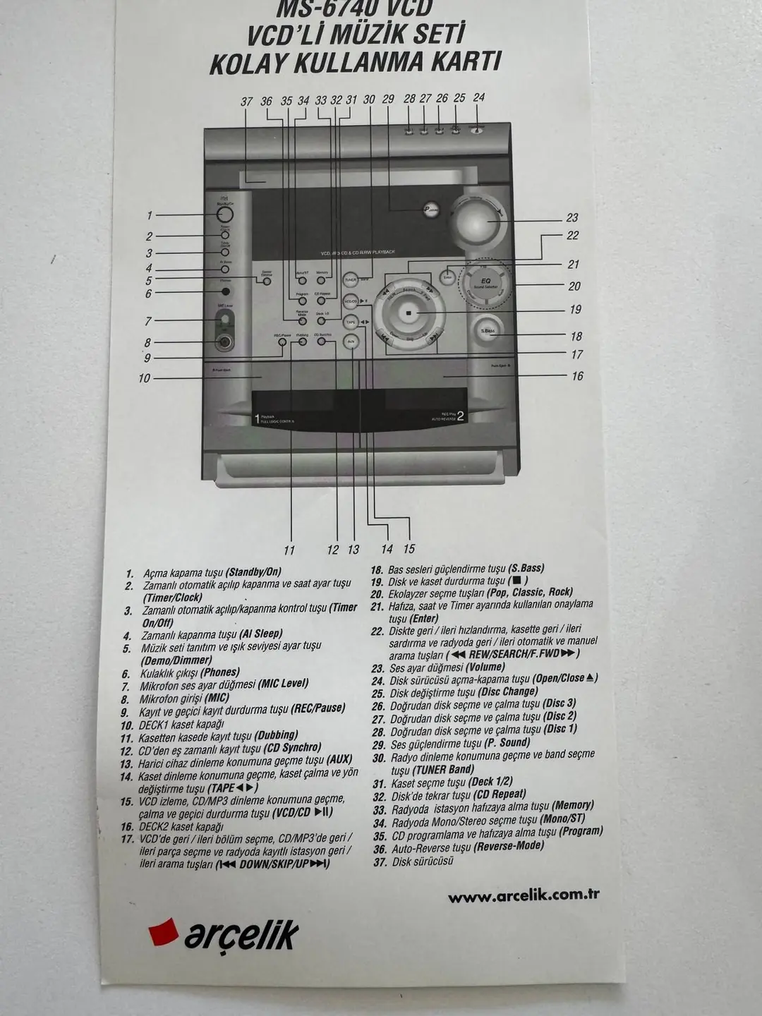 ARÇELİK MS-6740 VCD MÜZİK SETİ